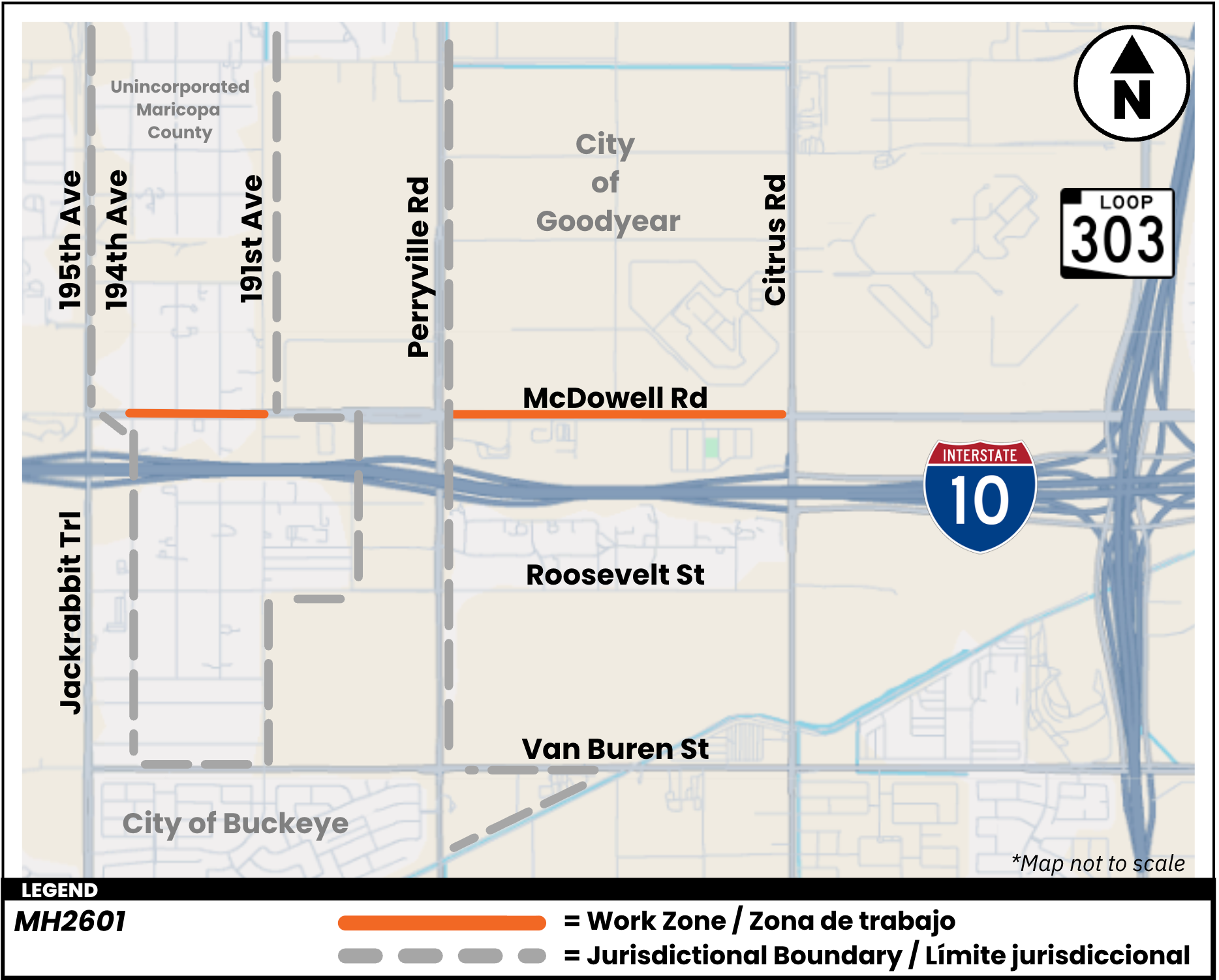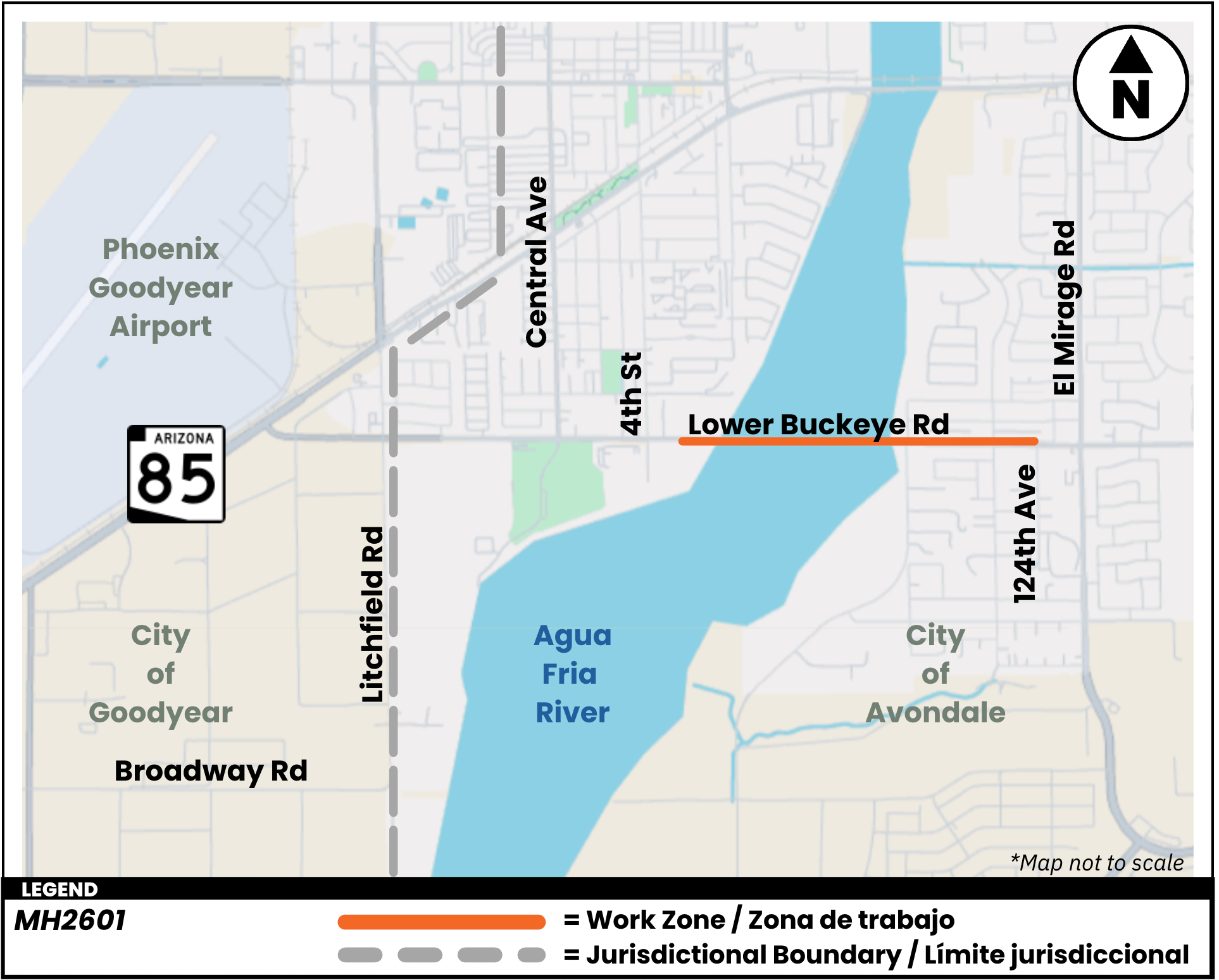 - Lower Buckeye Road between 6th Street and 124th Avenue;
