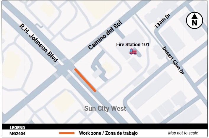 The Maricopa County Department of Transportation (MCDOT) completed sidewalk and driveway repairs at R.H. Johnson Boulevard and Camino del Sol in Sun City West.