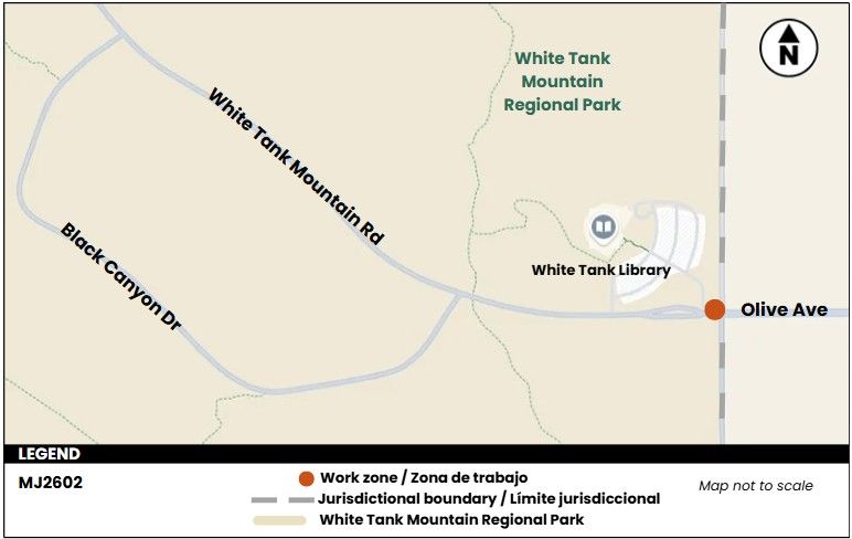 MCDOT workers will be making modifications to the existing median on Olive Avenue, just east of the White Tanks Library entrance.