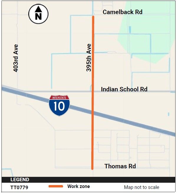 On Monday and Tuesday, March 2-3, 2026, the Maricopa County Department of Transportation (MCDOT) will be performing repairs to sections of 395th Avenue between Thomas and Camelback roads.