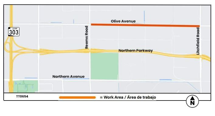 This project will improve traffic flow on Olive Avenue, from Reems Road to Litchfield Road, making it a five-lane arterial road with a center turn lane.