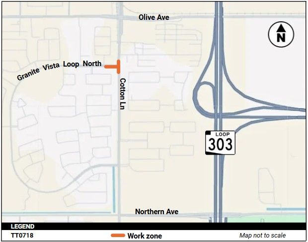 Where: Work will be conducted on Cotton Lane between Granite Vista Loop North and Olive Avenue.