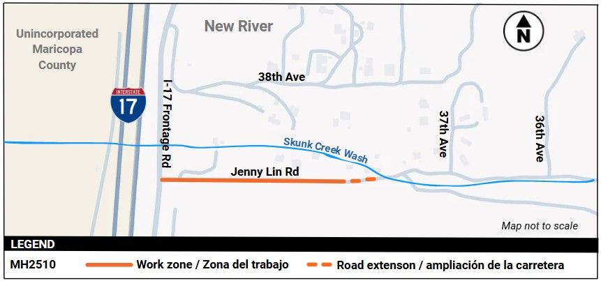 The Maricopa County Department of Transportation (MCDOT) is planning for roadway improvements to Jenny Lin Road, from the Interstate 17 Frontage Road to Skunk Creek Wash, west of 37th Avenue, in New River.