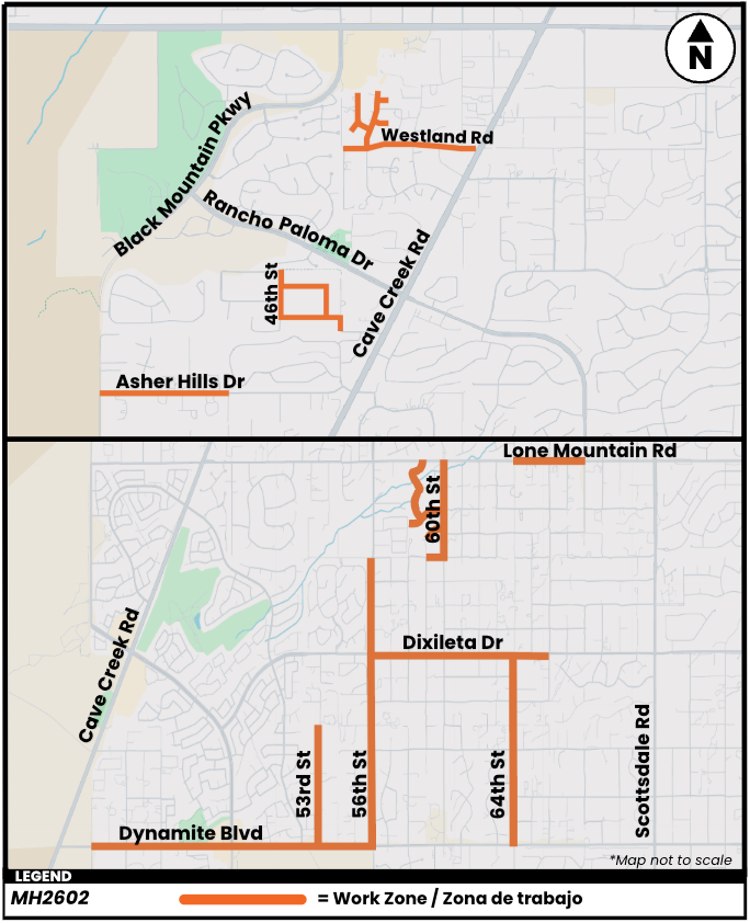 The Maricopa County Department of Transportation (MCDOT) will be performing pavement preservation work in the north Phoenix/Scottsdale area to extend the life of the roadway, renew the surface, seal cracks, and protect the road from UV rays. MCDOT advises drivers to plan ahead for temporary daytime lane closures and possible delays in both directions on roads undergoing construction. Flagging operations will be in place to help direct traffic while work is underway. Construction begins on Monday, April 20, and continues for four weeks until mid-May, 2026.